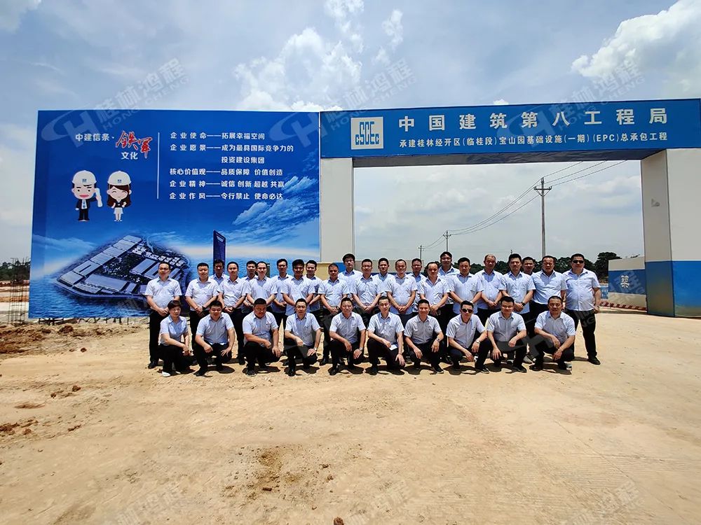 會后,銷售團(tuán)隊在桂林鴻程副董事長容北國的帶領(lǐng)下,參觀公司位于寶山工業(yè)園的新項(xiàng)目施工現(xiàn)場。三個月前的奠基儀式依舊清晰在目,而今整片園區(qū)土建工作正在如火如荼的開展,施工現(xiàn)場一派熱鬧。
